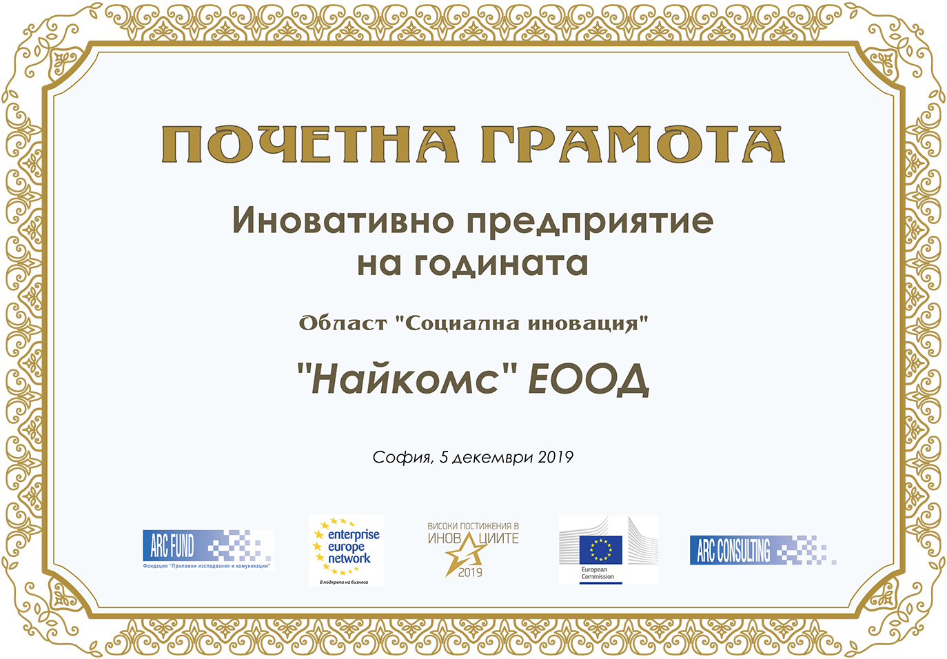 С марката се отличават върхови постижения, високо качество и оригиналност на иновациите, въздействие на националния и световен пазар, върху околната среда и обществото, ефективност на бизнес модела. Държавният глава Румен Радев коментира , че фирмите, които залагат на иновациите са бъдещето. Иновациите са ключов инструмент за устойчиво развитие. Фирма Найкомс се припознава в думите му и „продължава смело и неотклонно по пътя, който е поела, защото това е бъдещето“.